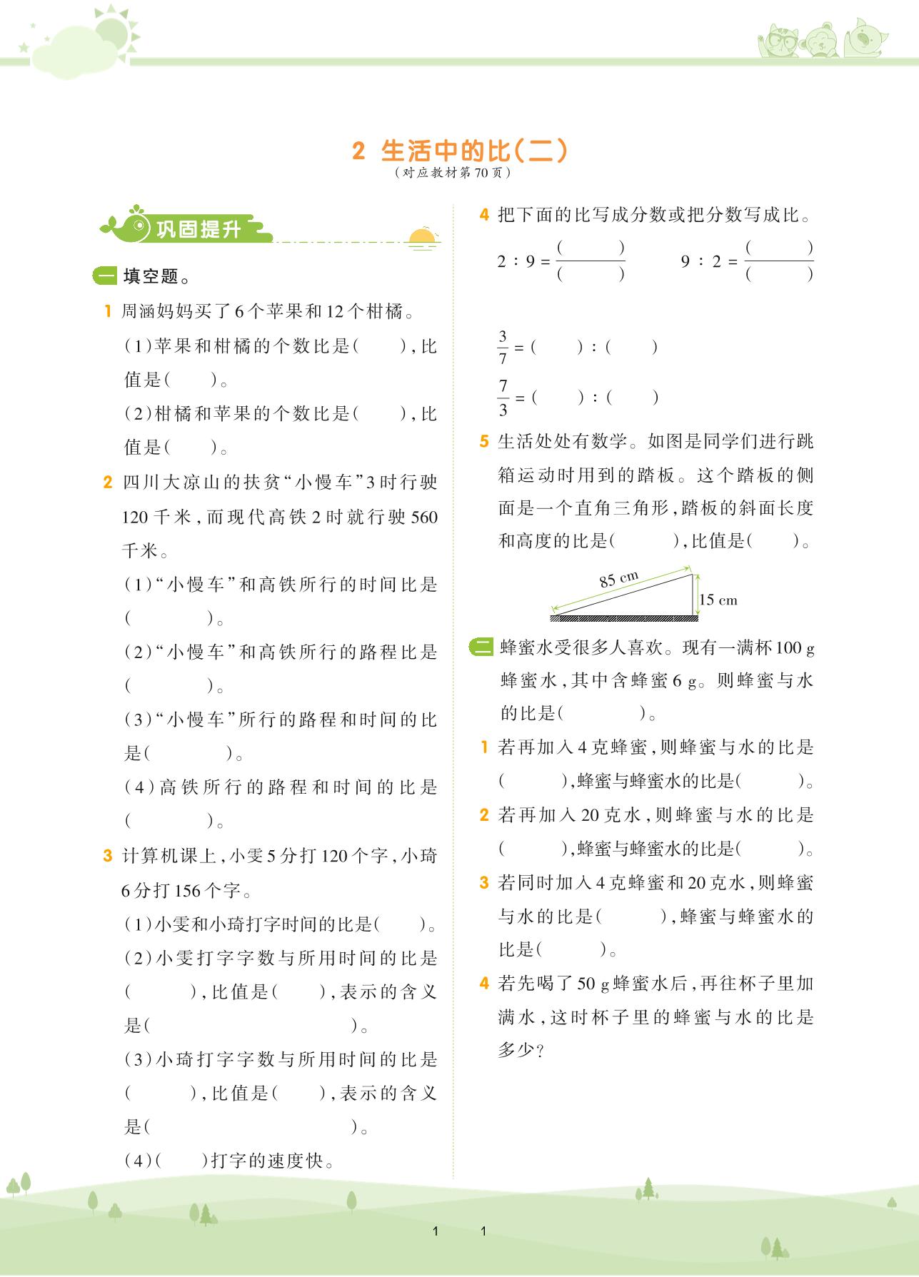 2020上册六年级数学北师版 第六单元 比的认识——2 生活中的比(二)