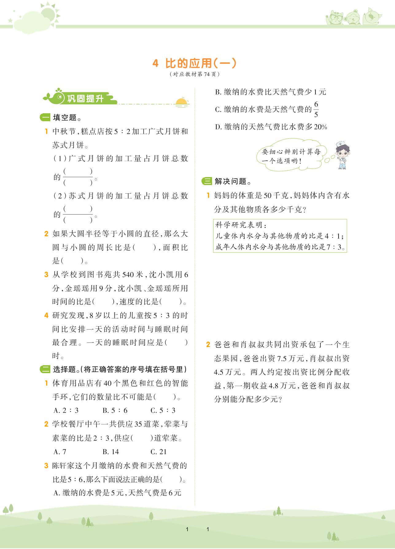 2020上册六年级数学北师版 第六单元 比的认识——4 比的应用(一)