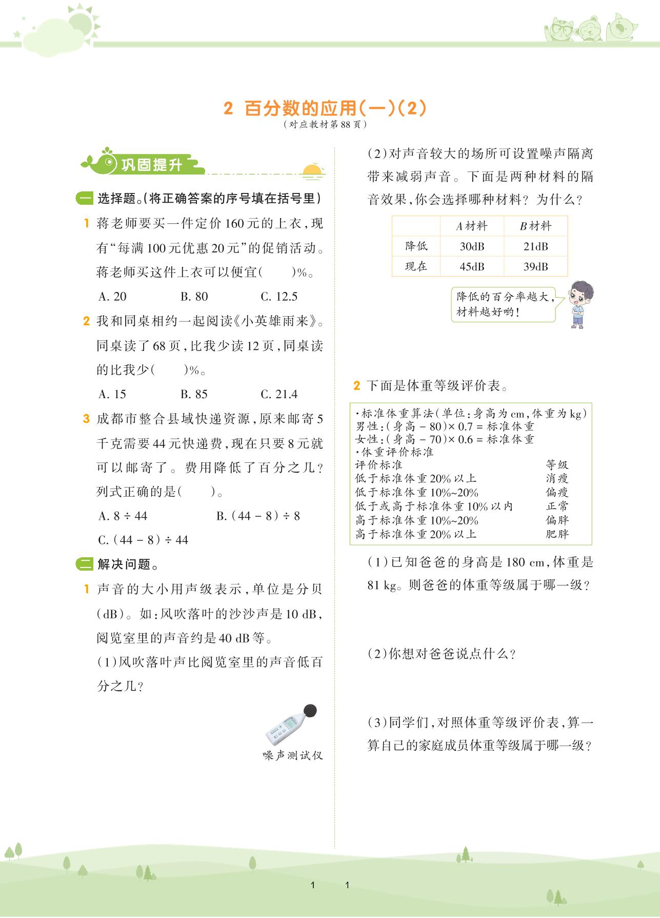 2020上册六年级数学北师版 第七单元 百分数的应用——2 百分数的应用(一)(2)