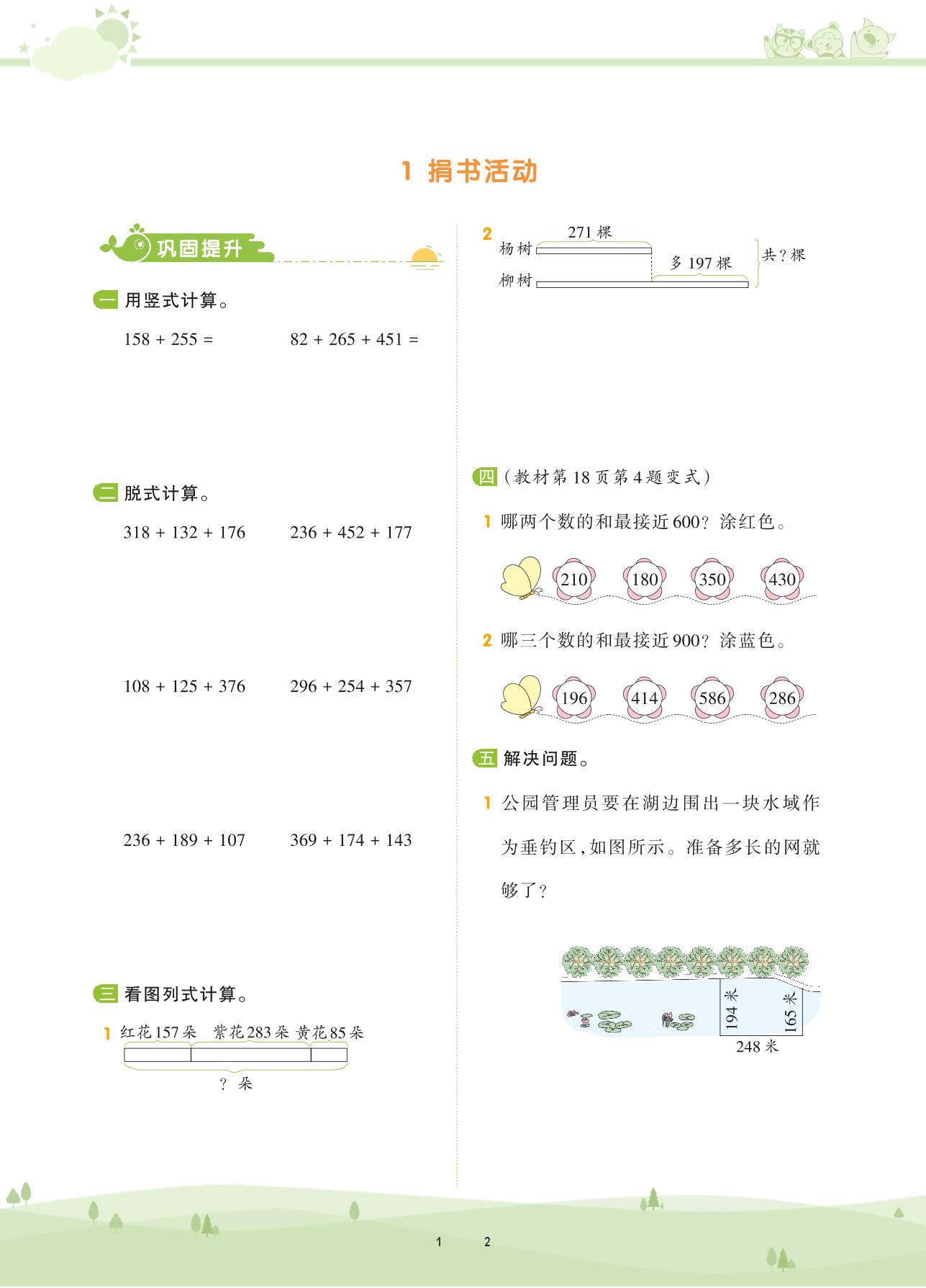 2020上册三年级数学北师版 第三单元 加与减——1 捐书活动