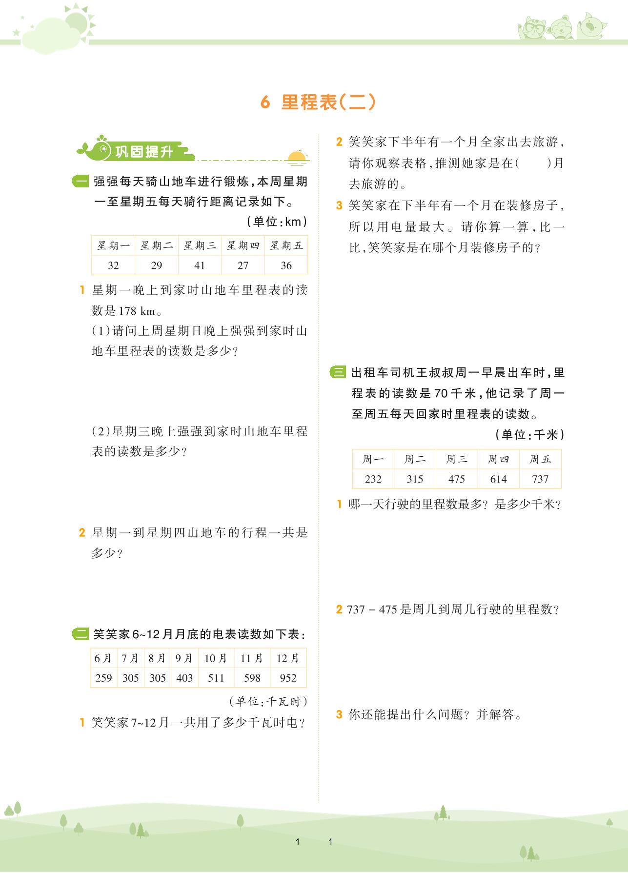 2020上册三年级数学北师版 第三单元 加与减——6 里程表(二)