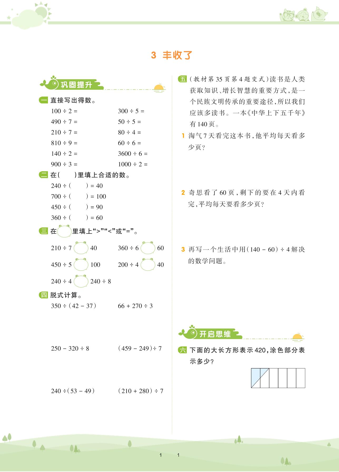 2020上册三年级数学北师版 第四单元 乘与除——3 丰收了