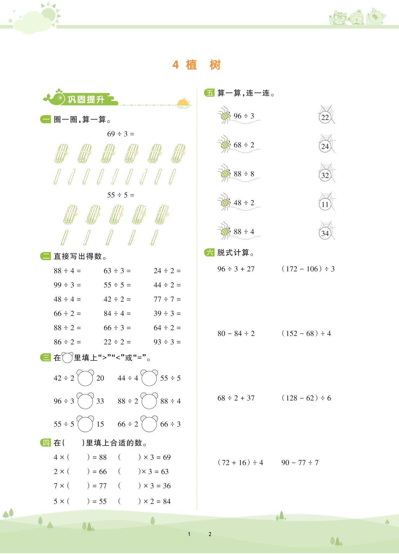 2020上册三年级数学北师版 第四单元 乘与除——4 植树
