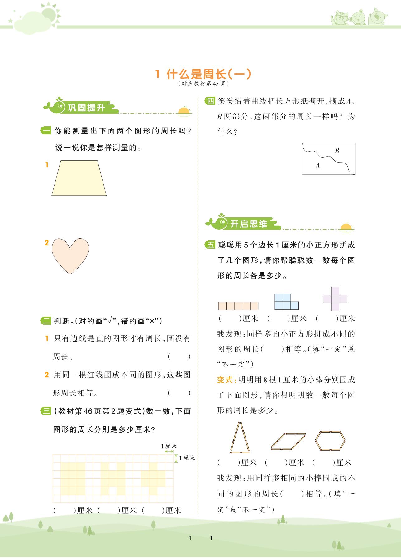 2020上册三年级数学北师版 第五单元 周 长——1 什么是周长(一)
