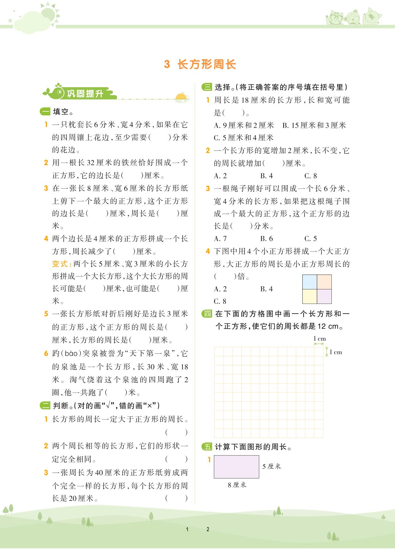 2020上册三年级数学北师版 第五单元 周 长——3 长方形周长