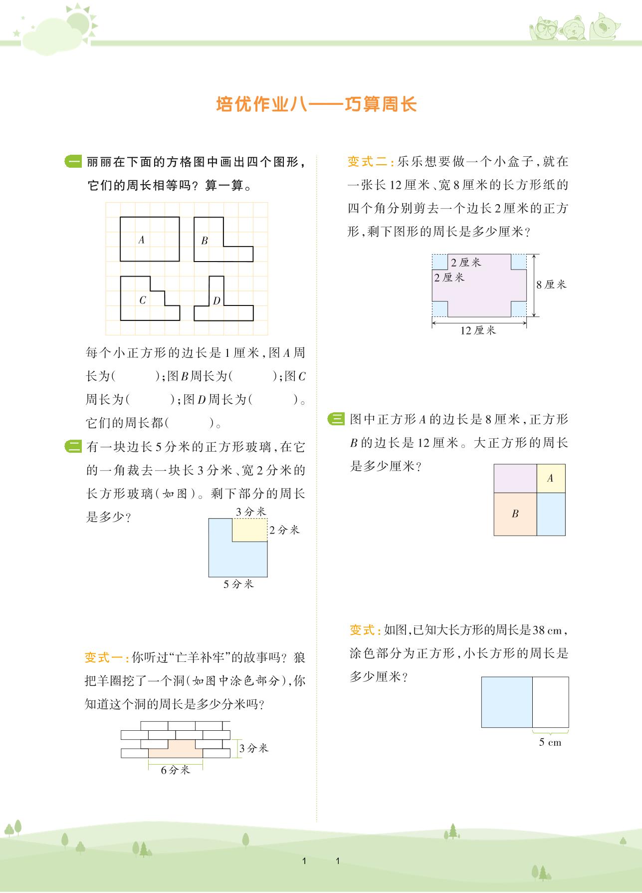 2020上册三年级数学北师版 第五单元 周 长——培优作业八——巧算周长