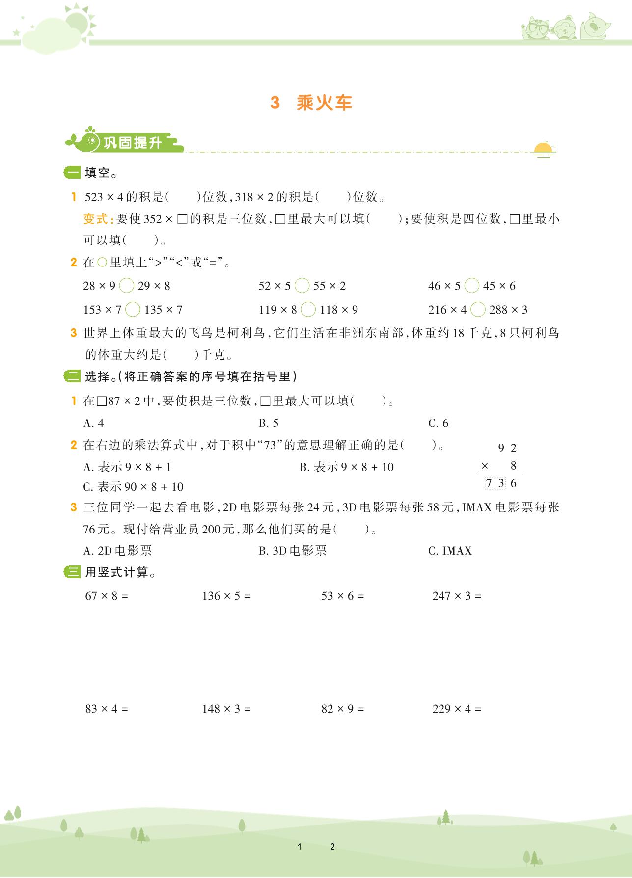 2020上册三年级数学北师版 第六单元 乘 法——3 乘火车
