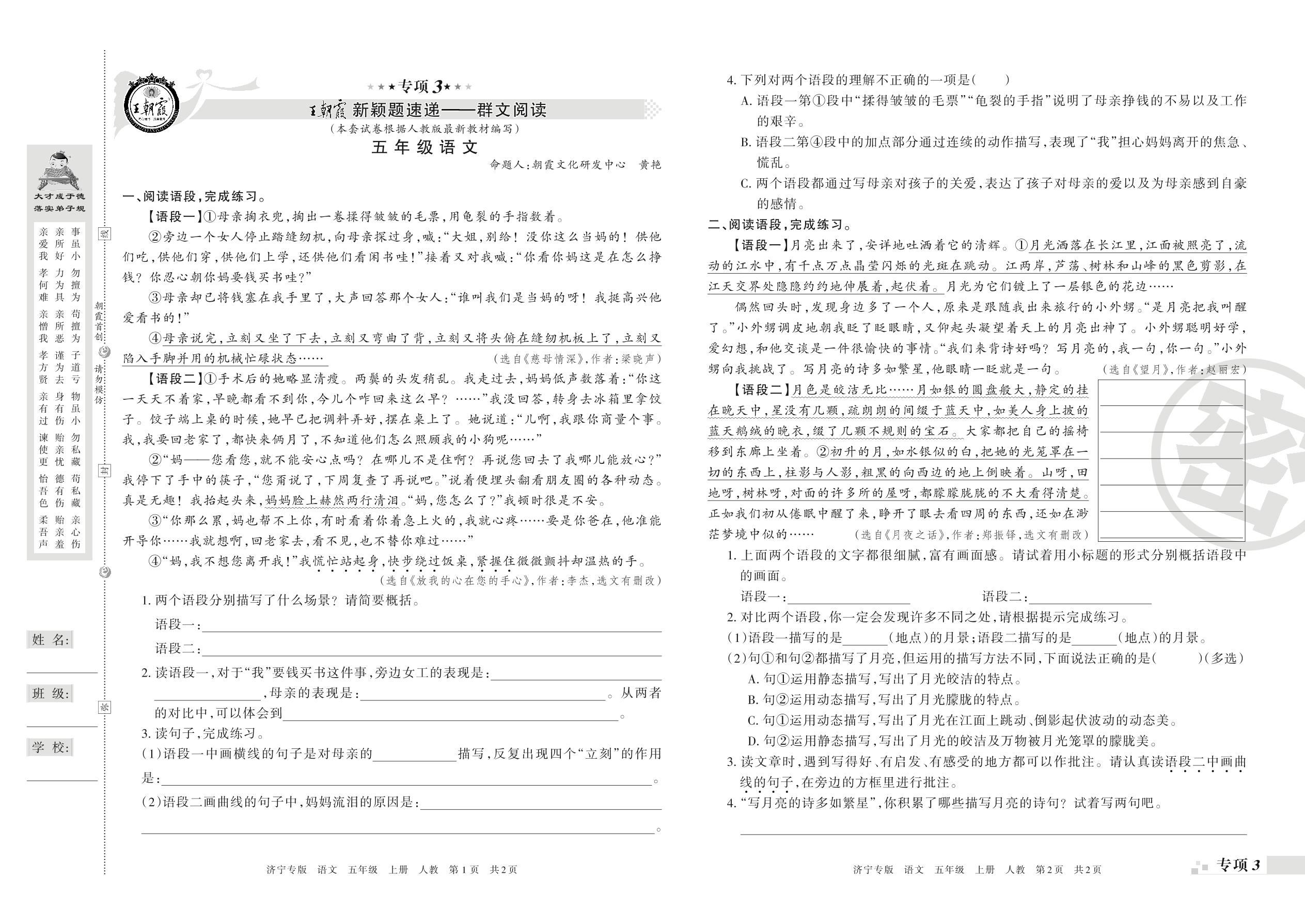 王朝霞期末专项卷——群文阅读、古诗文阅读五年级上册语文(人教版)_R210801185500【0】