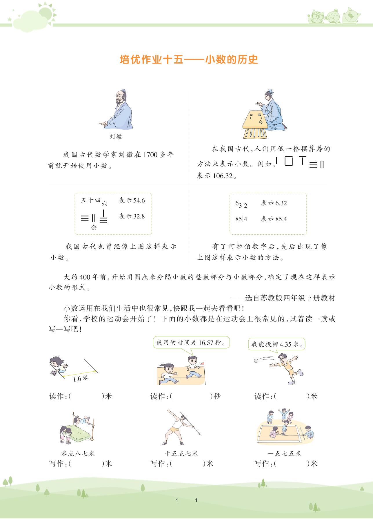 2020上册三年级数学北师版 第八单元 认识小数——培优作业十五——小数的历史