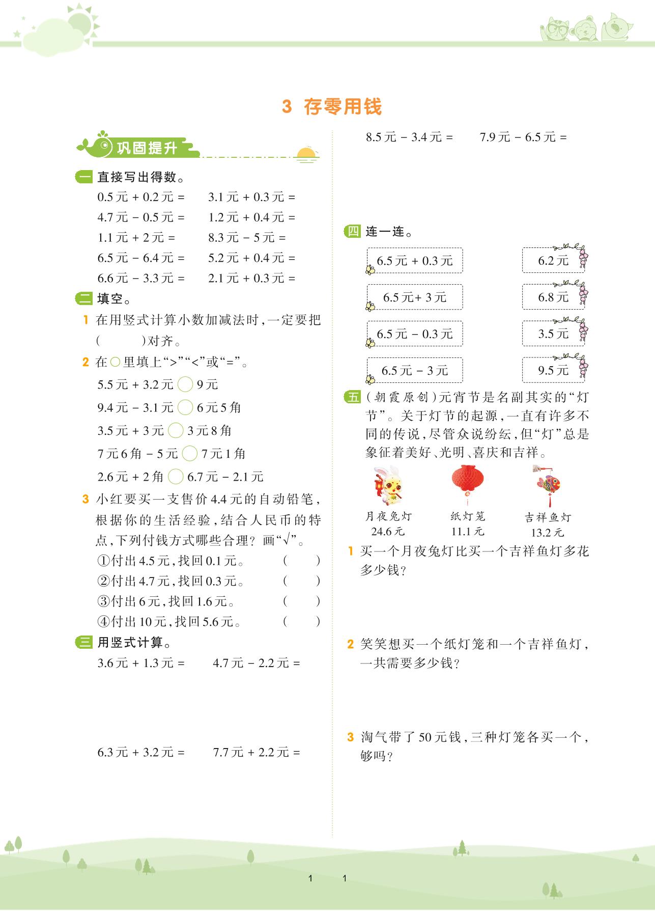 2020上册三年级数学北师版 第八单元 认识小数——3 存零用钱