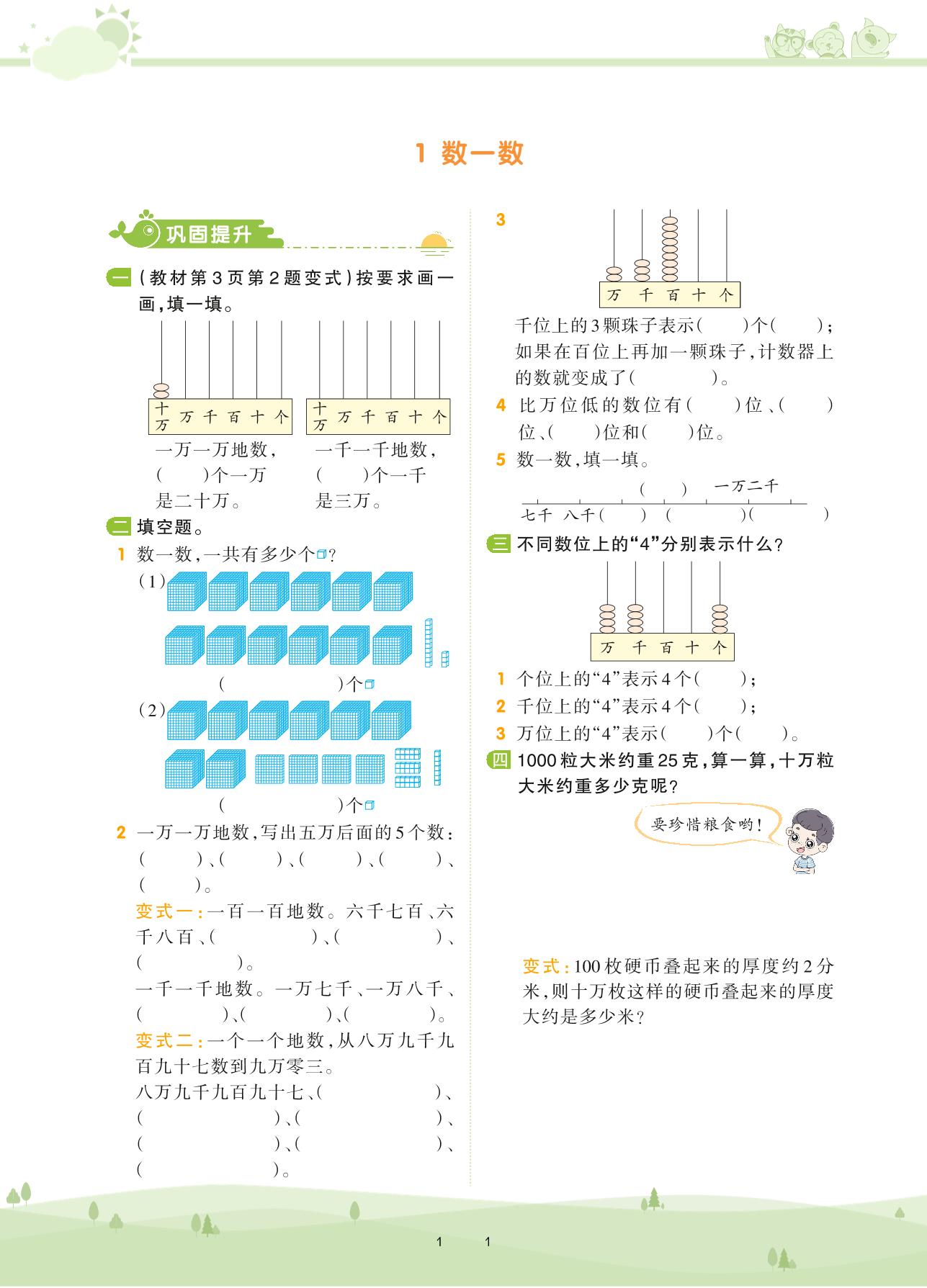2020上册四年级数学北师版 第一单元 认识更大的数——1 数一数