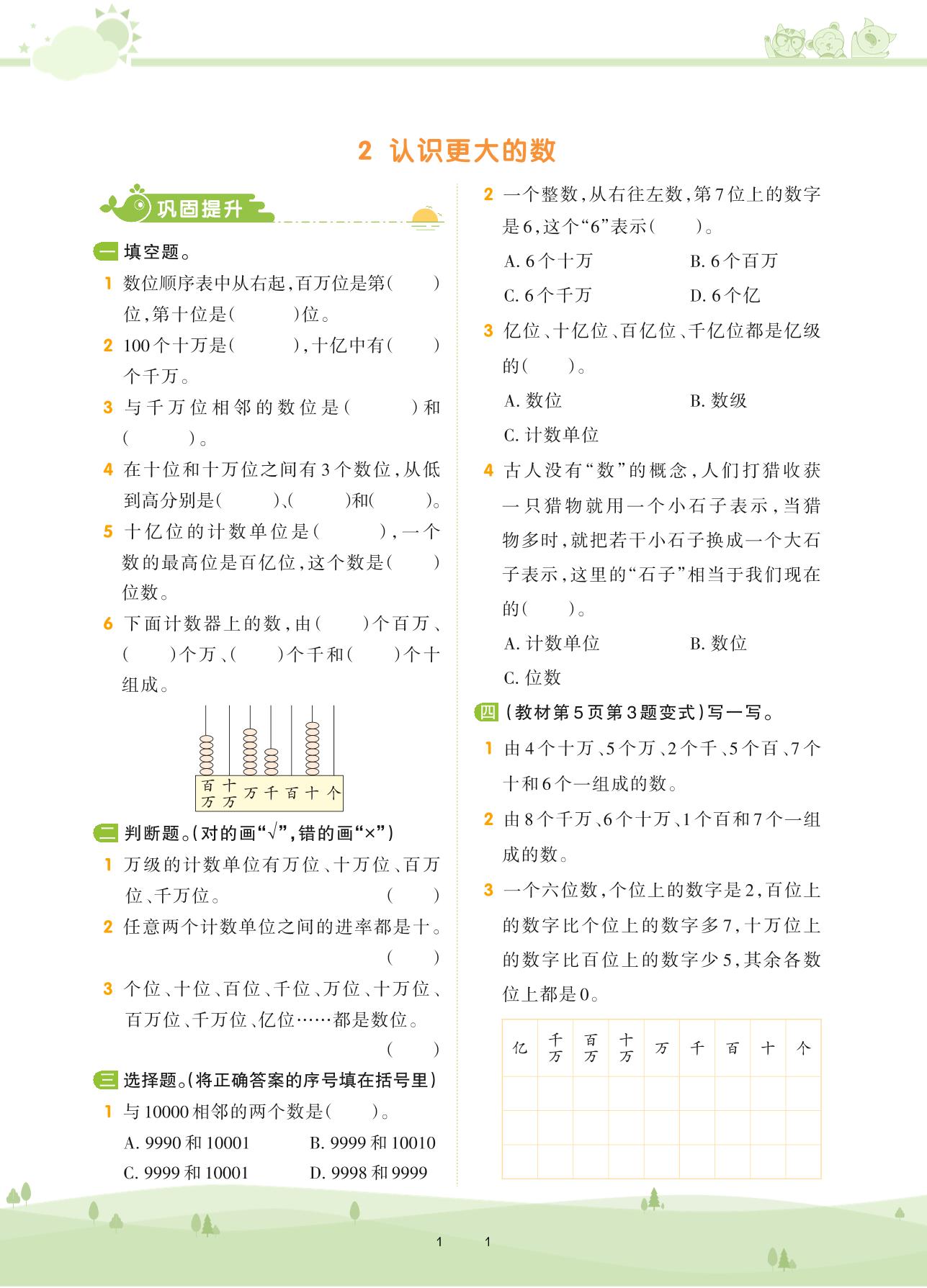 2020上册四年级数学北师版 第一单元 认识更大的数——2 认识更大的数