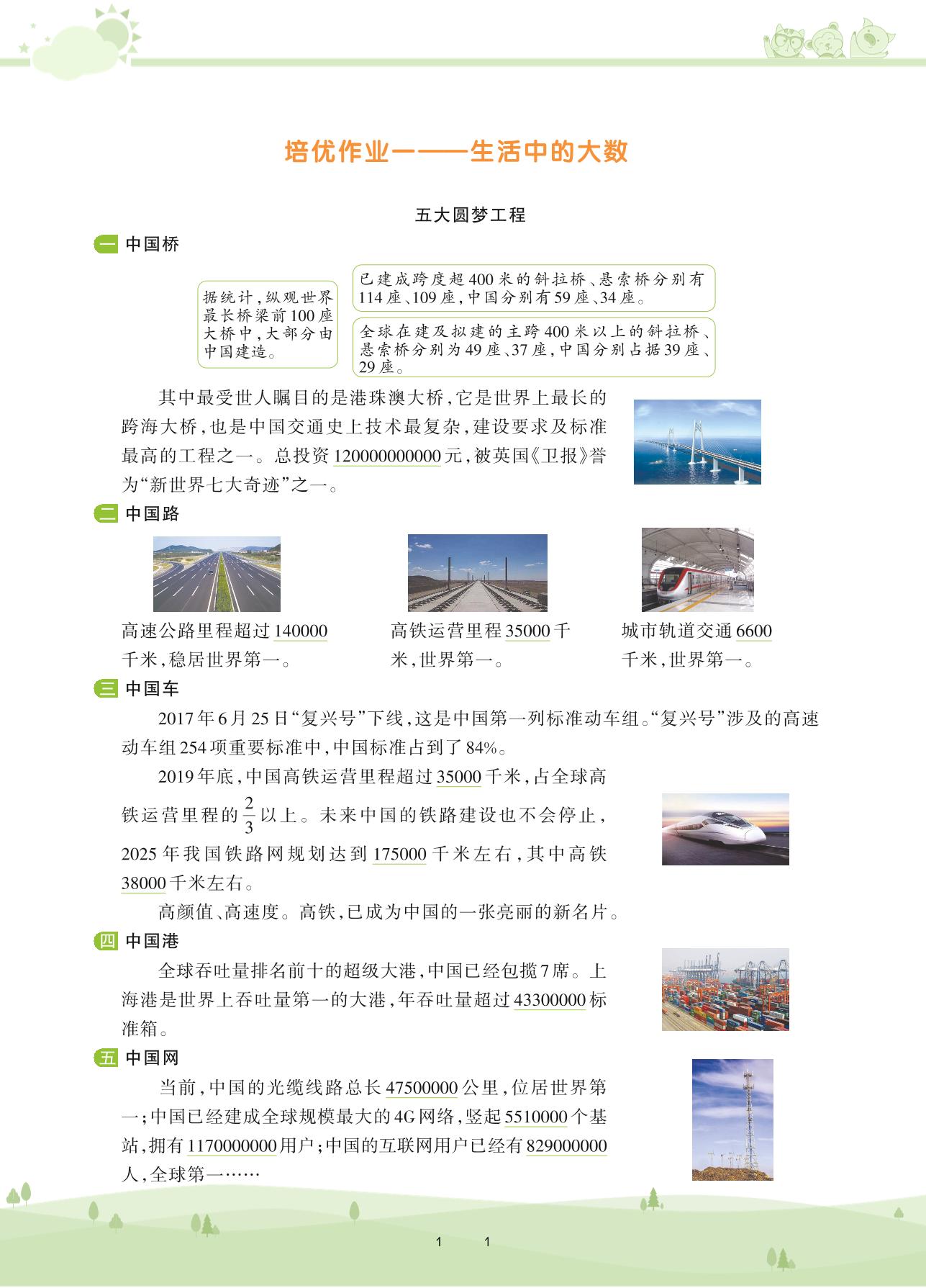 2020上册四年级数学北师版 培优作业一——生活中的大数