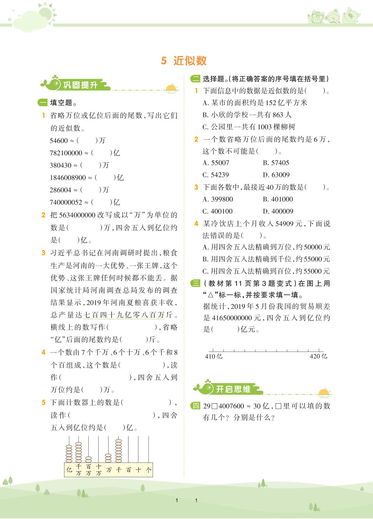 2020上册四年级数学北师版 第一单元 认识更大的数——5 近似数