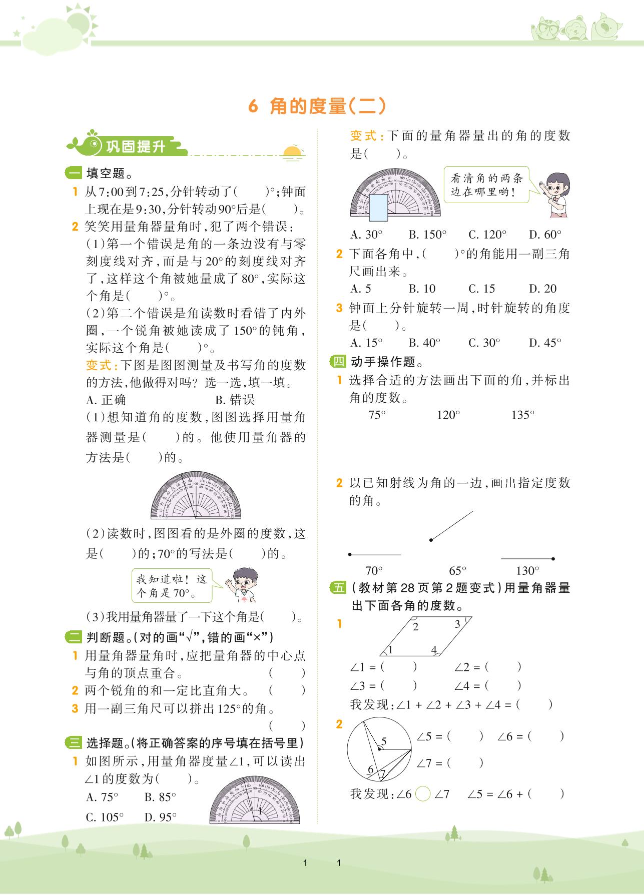 2020上册四年级数学北师版 第二单元 线与角——6 角的度量(二)