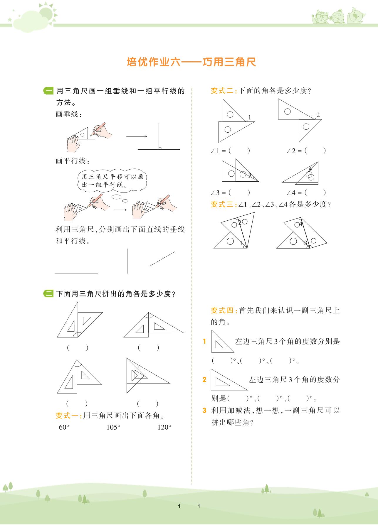 2020上册四年级数学北师版 第二单元 线与角——培优作业六——巧用三角尺