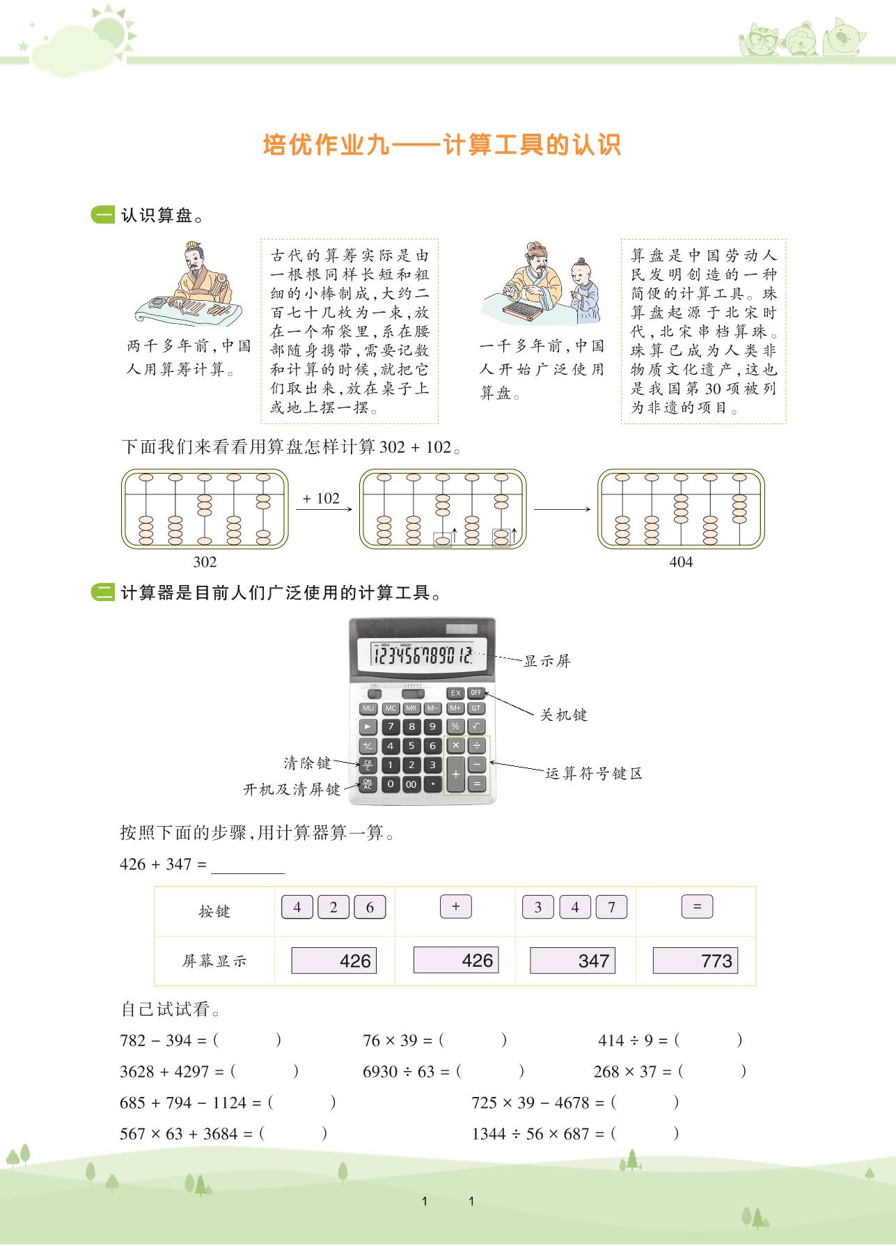 2020上册四年级数学北师版 第三单元 乘法——培优作业九——计算工具的认识