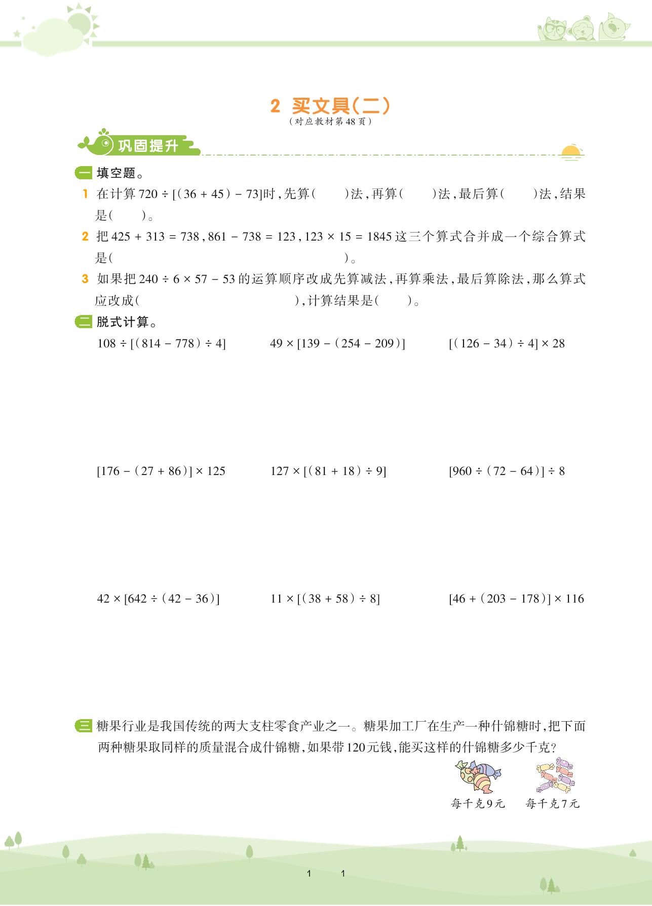 2020上册四年级数学北师版 第四单元 运算律——2 买文具(二)