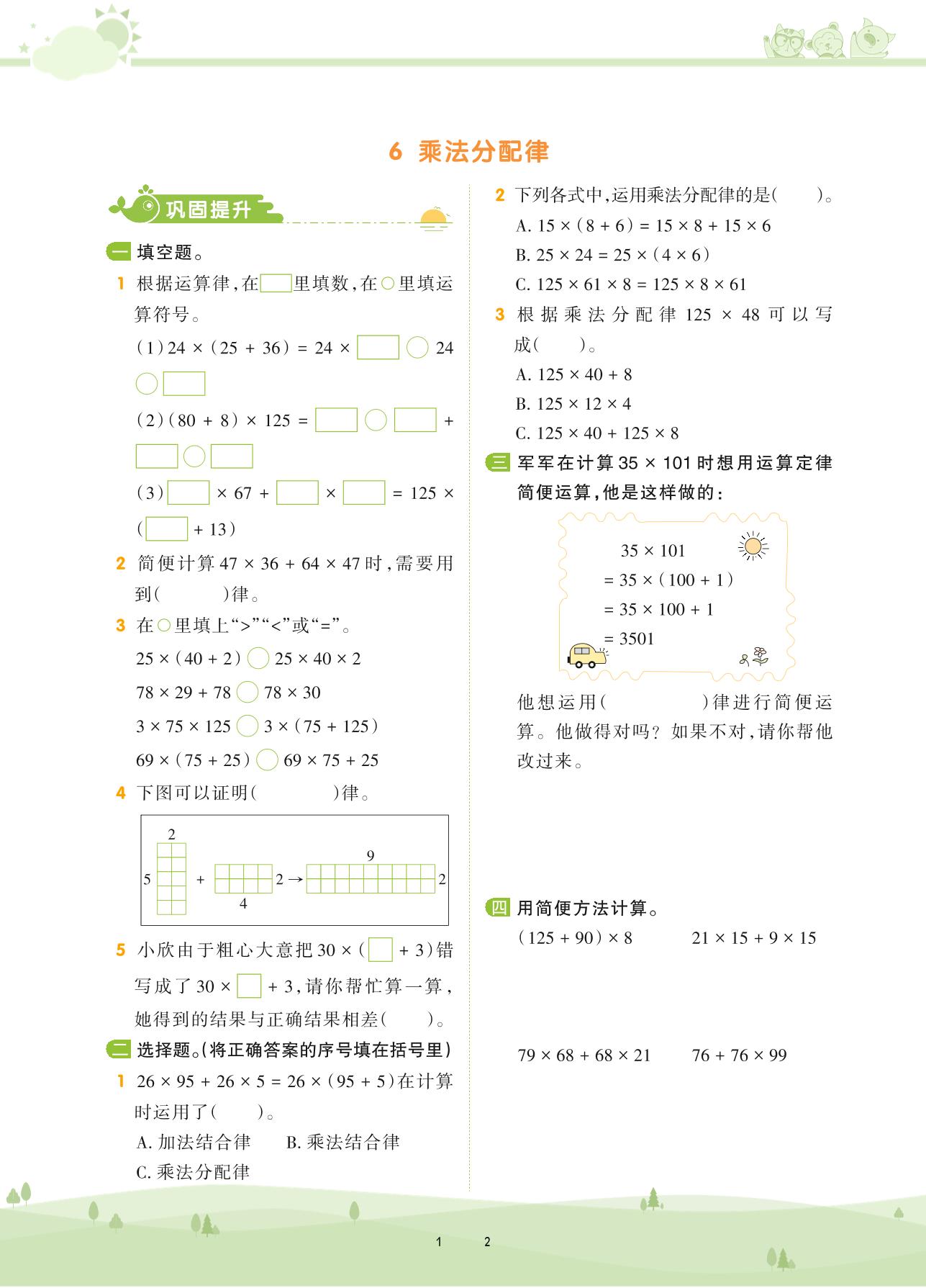 2020上册四年级数学北师版 第四单元 运算律——6 乘法分配律