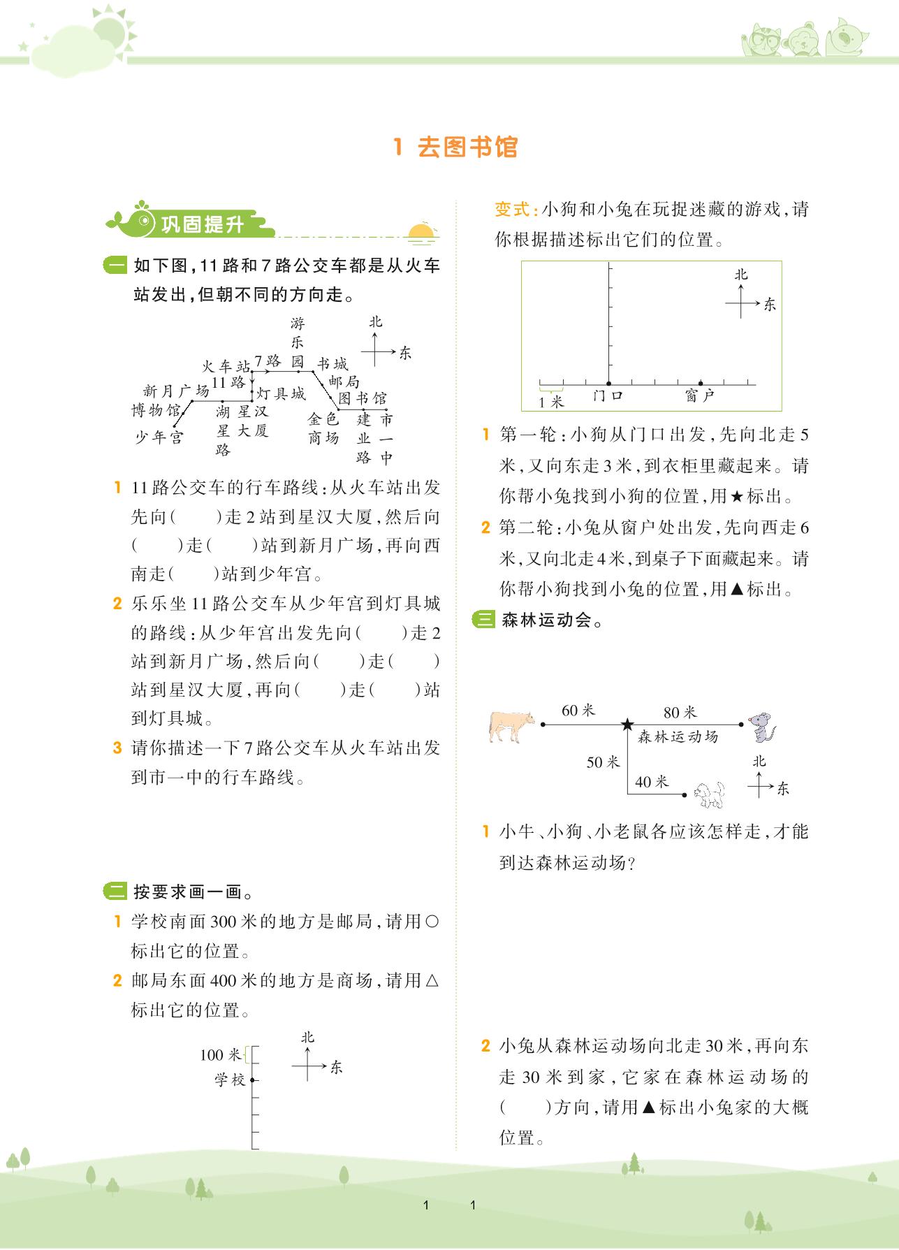 2020上册四年级数学北师版 第五单元 方向与位置——1 去图书馆