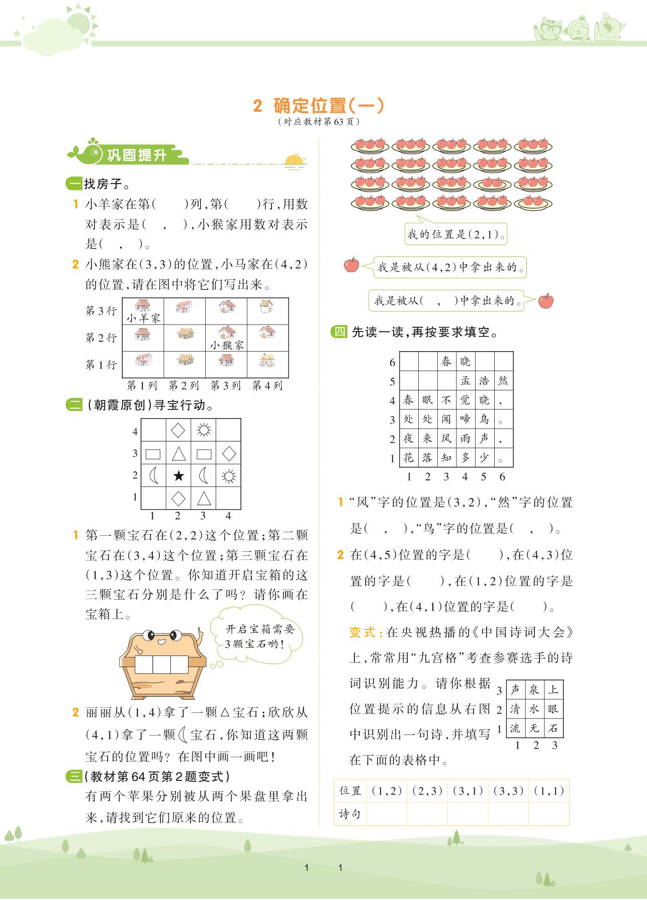 2020上册四年级数学北师版 第五单元 方向与位置——2 确定位置(一)