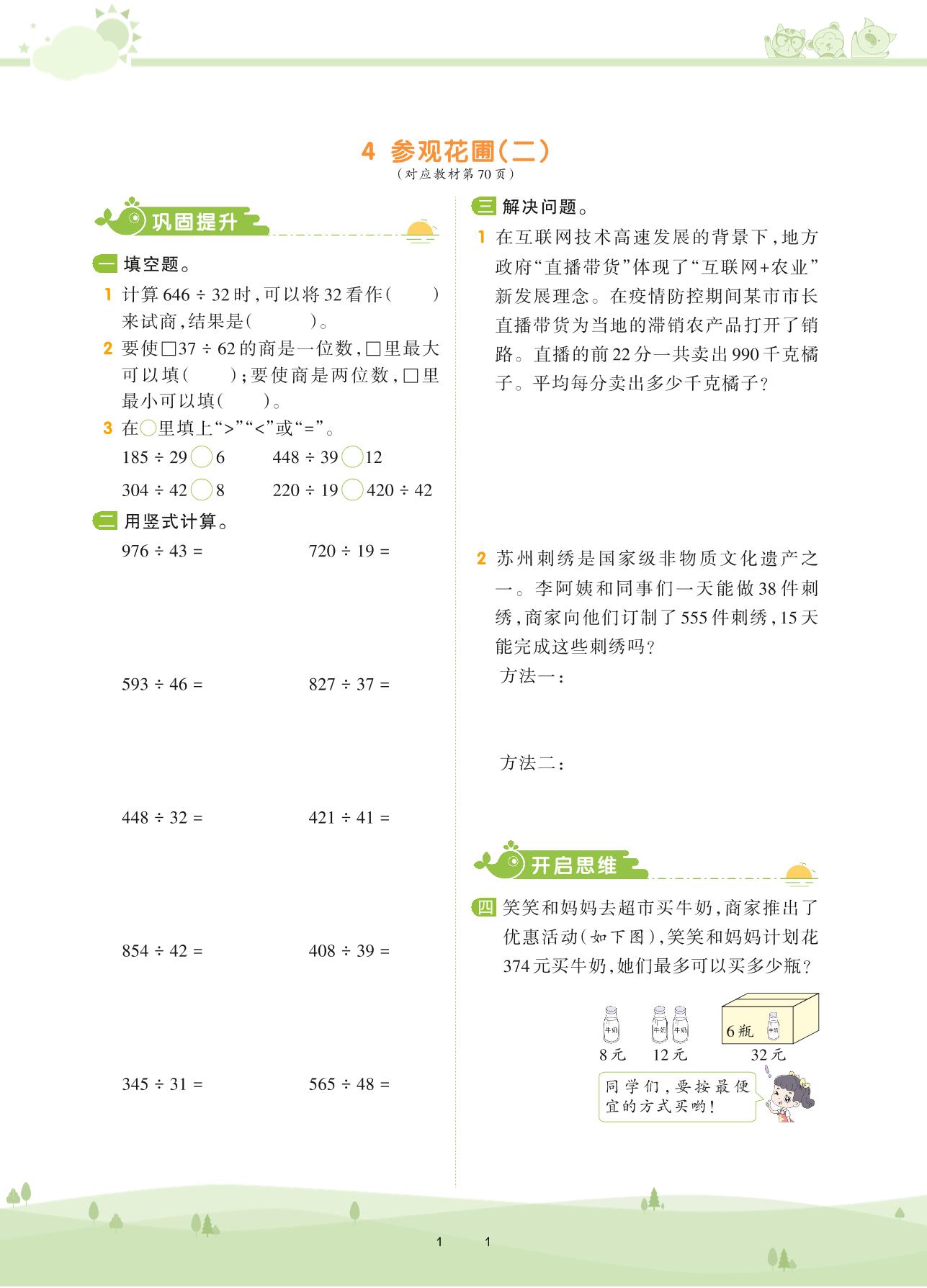 2020上册四年级数学北师版 第六单元 除法——4 参观花圃(二)