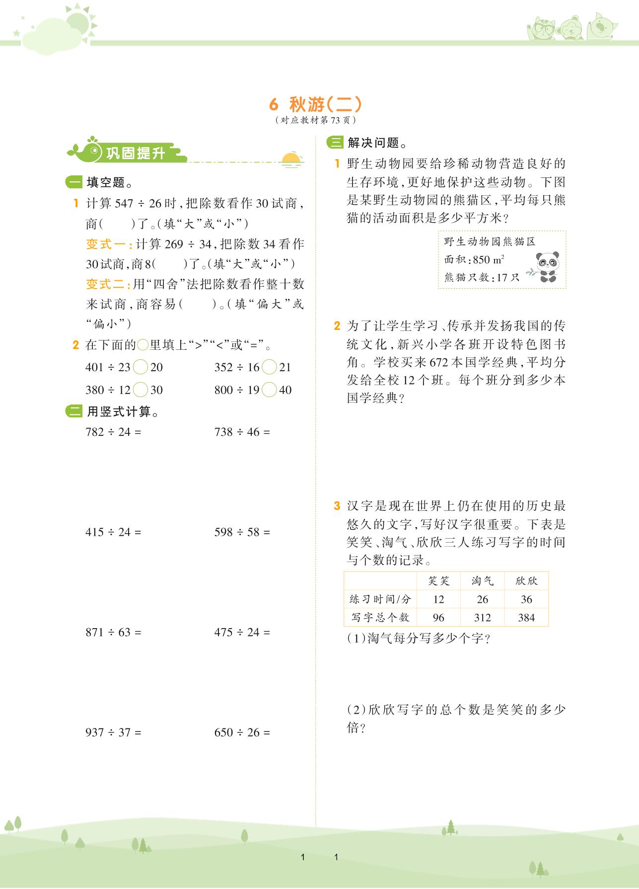 2020上册四年级数学北师版 第六单元 除法——6 秋游(二)