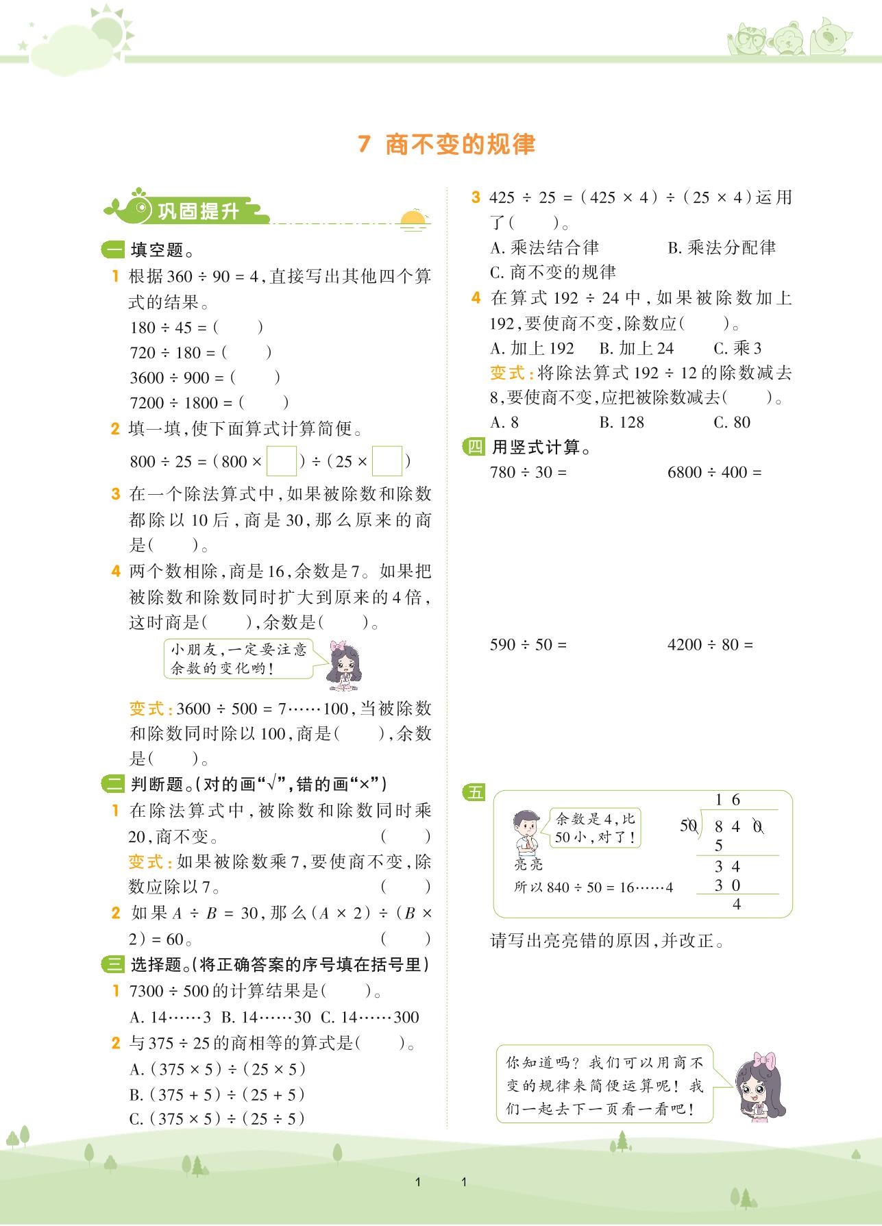 2020上册四年级数学北师版 第六单元 除法——7 商不变的规律