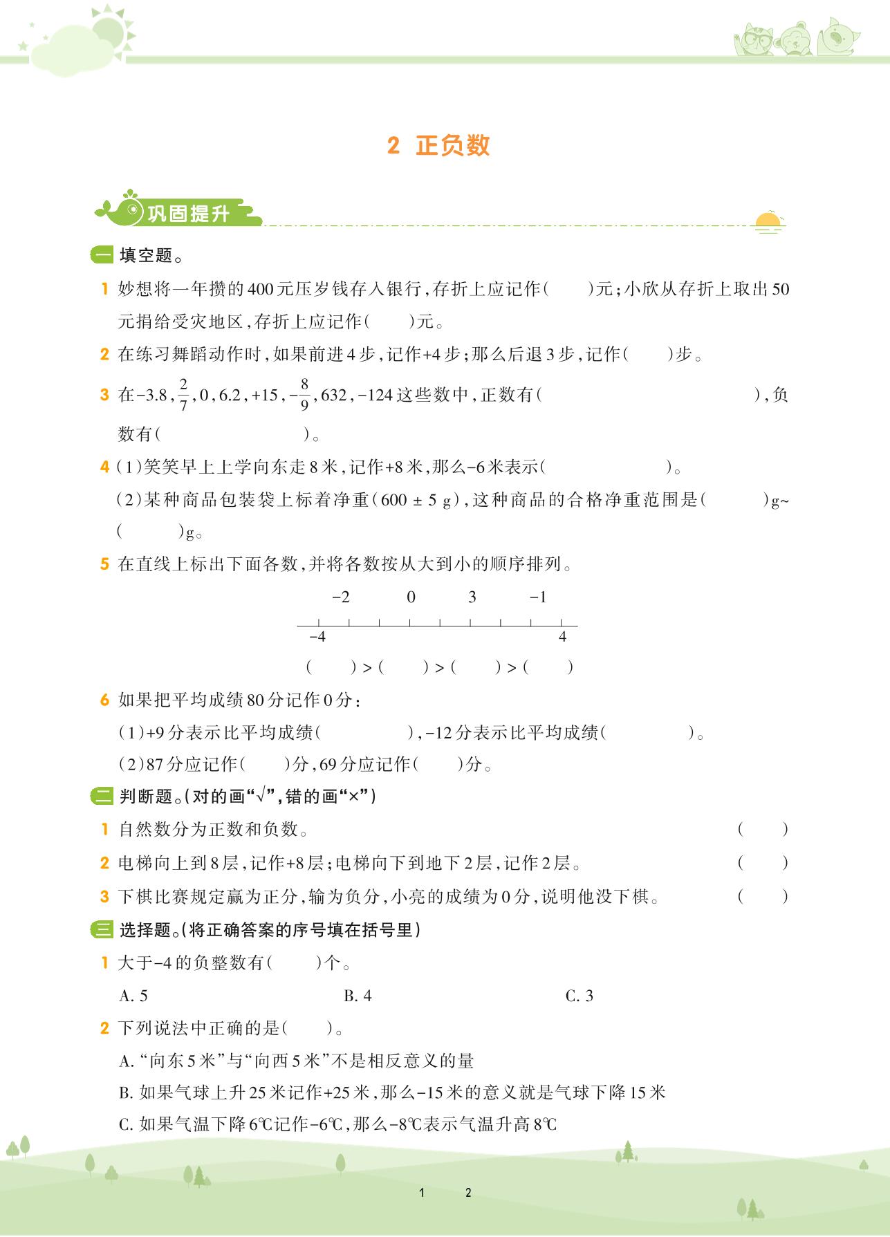 2020上册四年级数学北师版 第七单元 生活中的负数——2 正负数