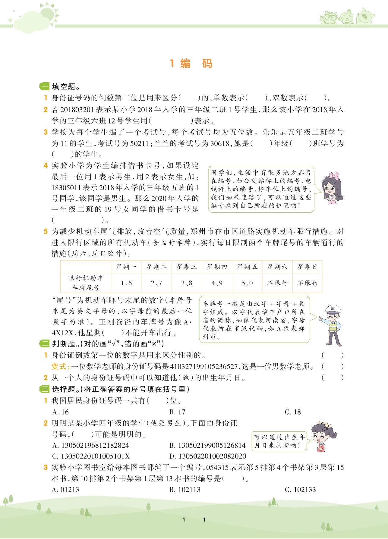 2020上册四年级数学北师版 数学好玩 ——1 编码