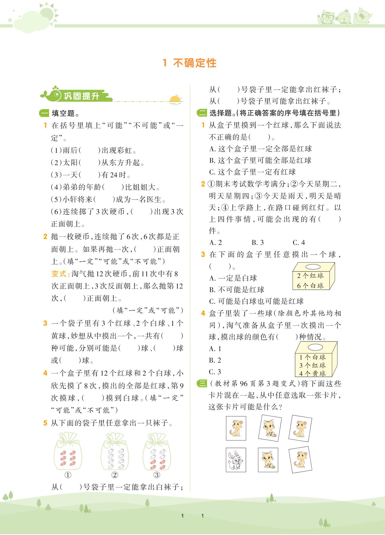 2020上册四年级数学北师版 第八单元 可能性——1 不确定性