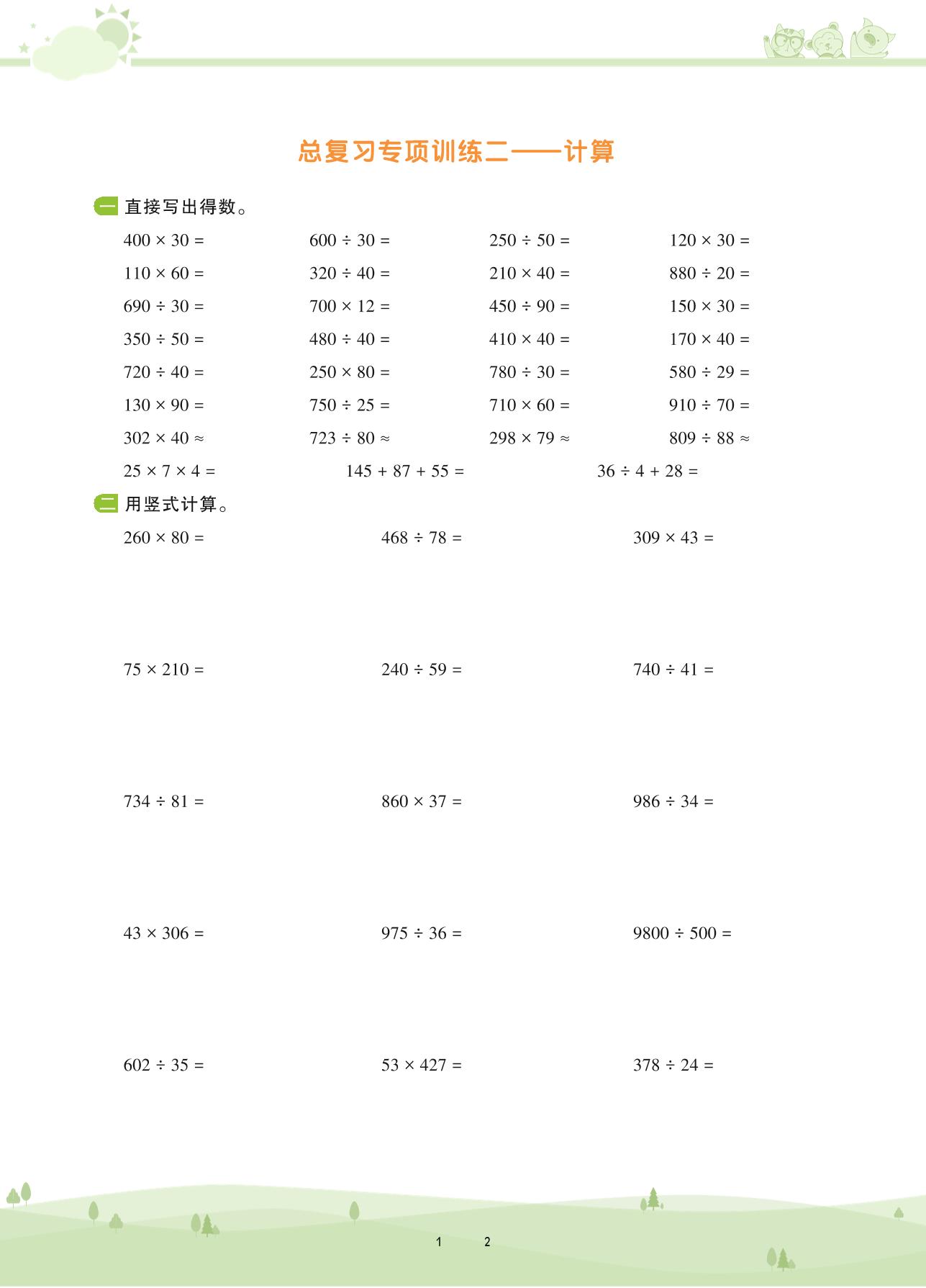 2020上册四年级数学北师版 总复习——计算