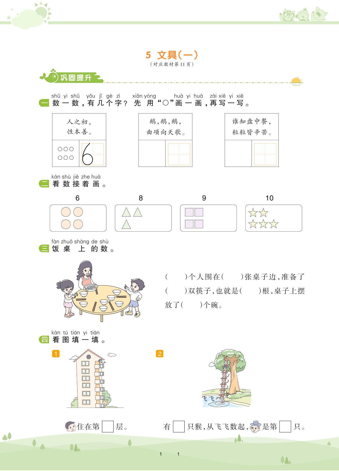 2020上册一年级数学北师版 第一单元 生活中的数——5 文具(一)