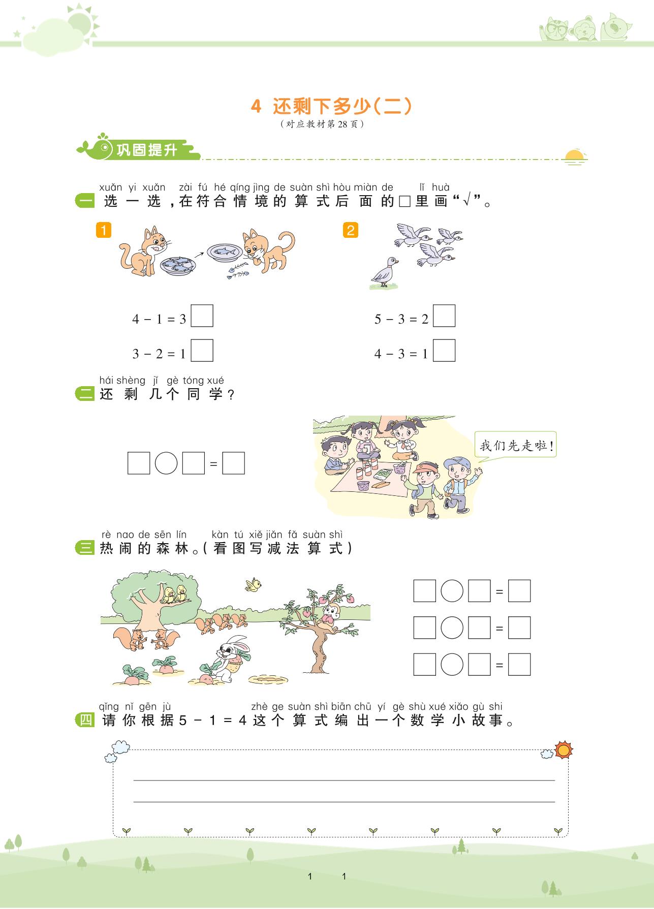 2020上册一年级数学北师版 第三单元 加与减(一)——4 还剩下多少(二)