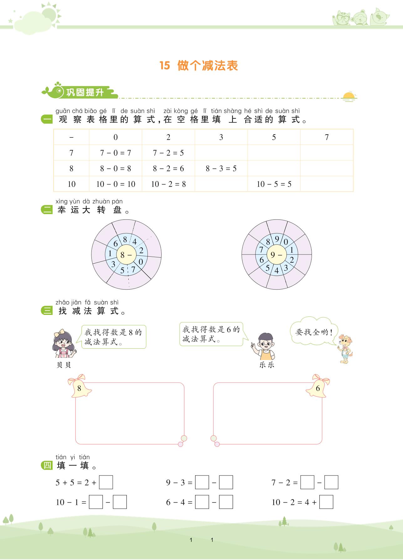 2020上册一年级数学北师版 第三单元 加与减(一)——15 做个减法表