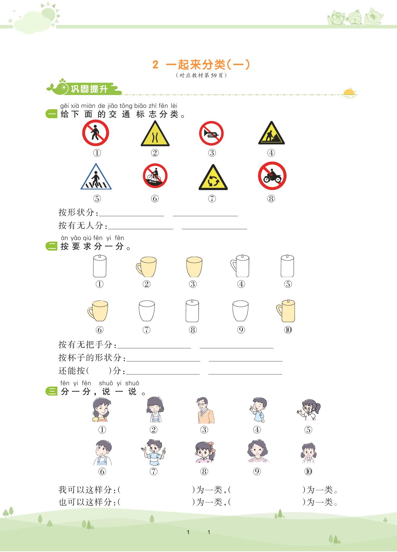 2020上册一年级数学北师版 第四单元 分类——2 一起来分类(一)