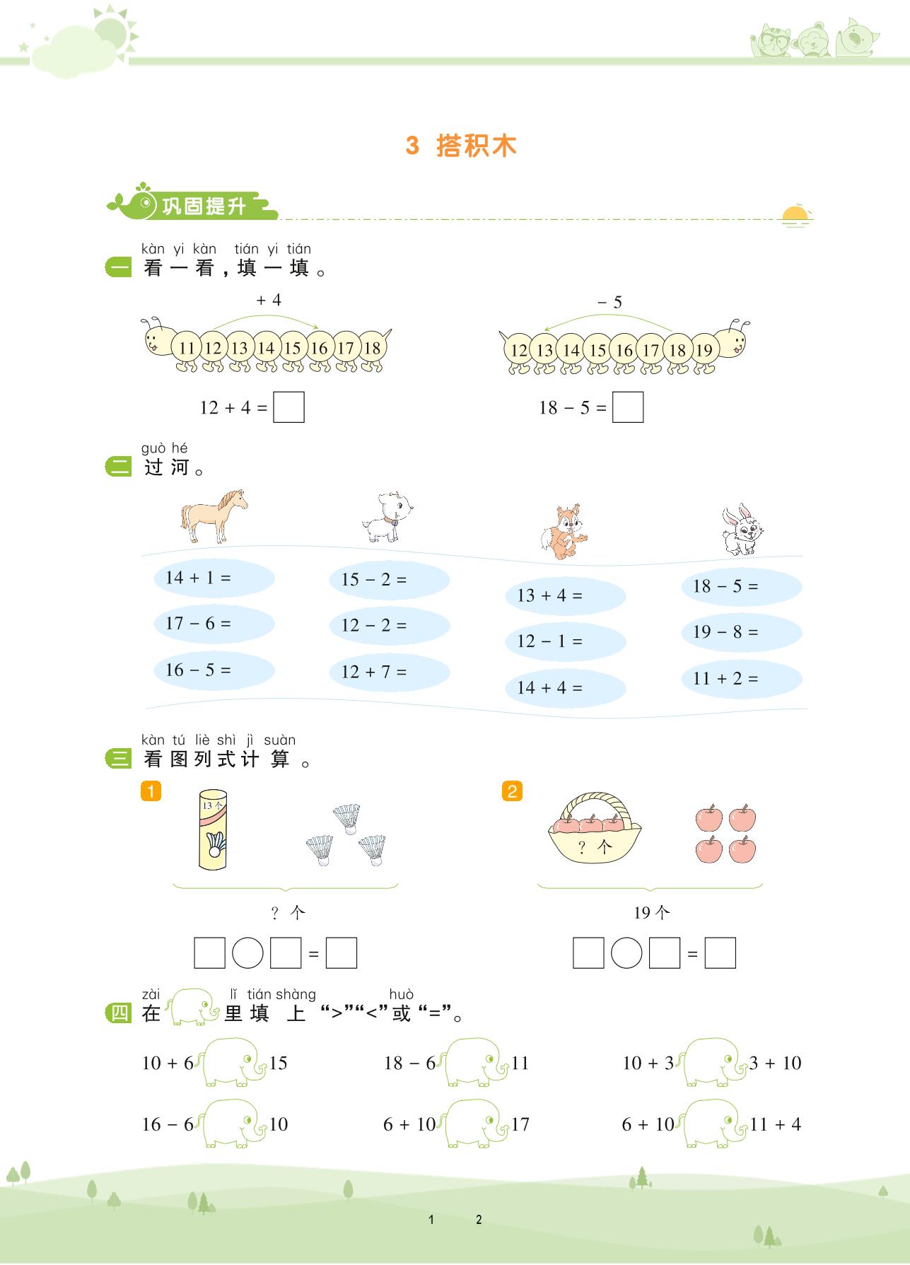 2020上册一年级数学北师版 第七单元 加与减(二)——3 搭积木