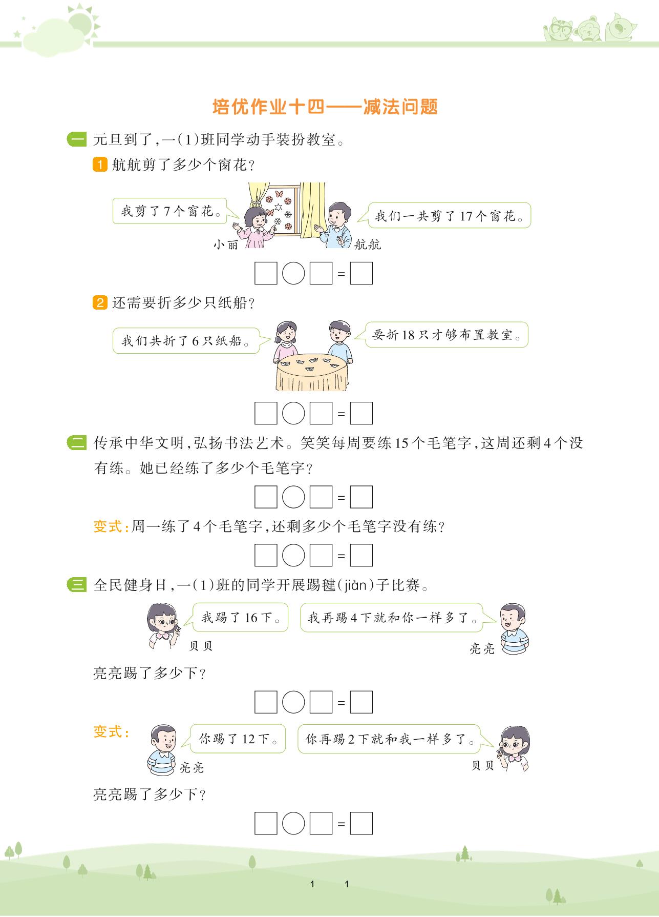 2020上册一年级数学北师版 第七单元 加与减(二)——培优作业十四——减法问题