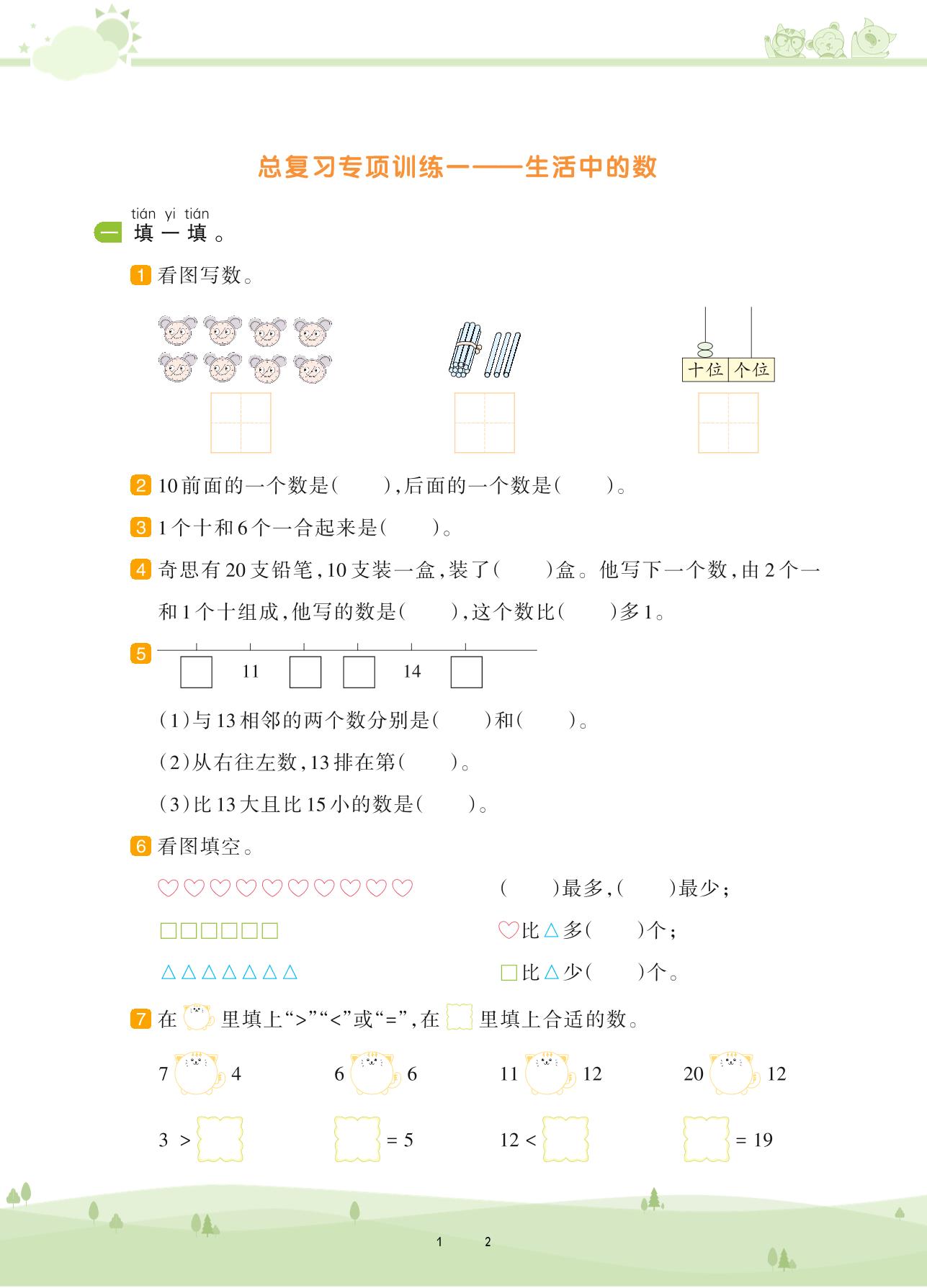 2020上册一年级数学北师版 总复习——生活中的数