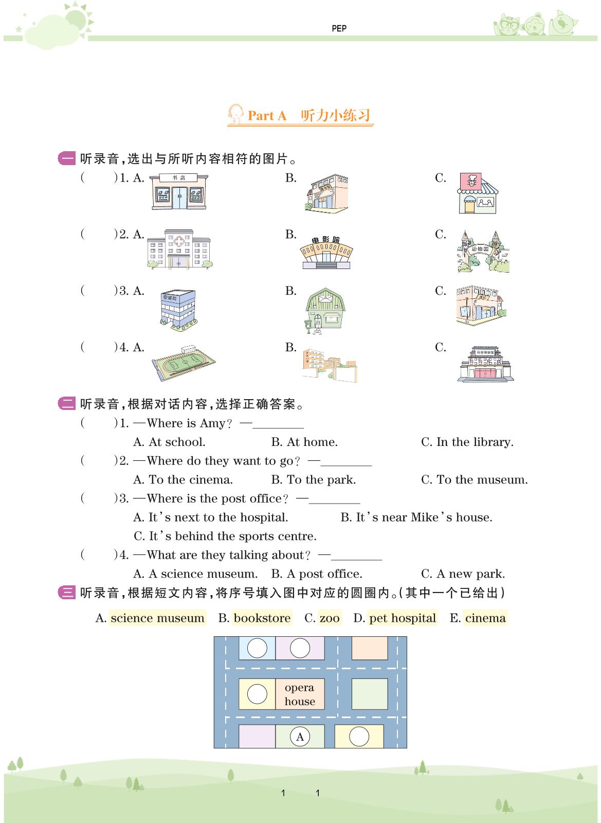 2020上册六年级英语PEP版 Unit 1——Part A 听力小练习