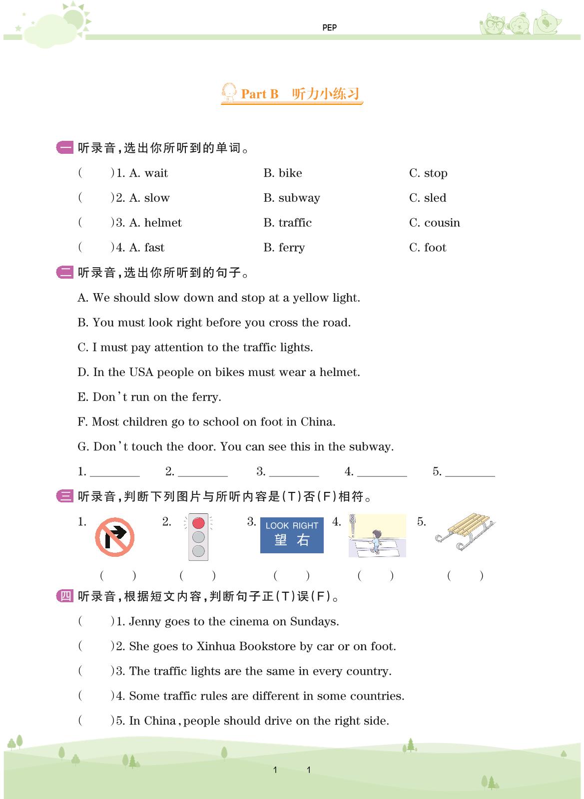 2020上册六年级英语PEP版 Unit 2——Part B 听力小练习