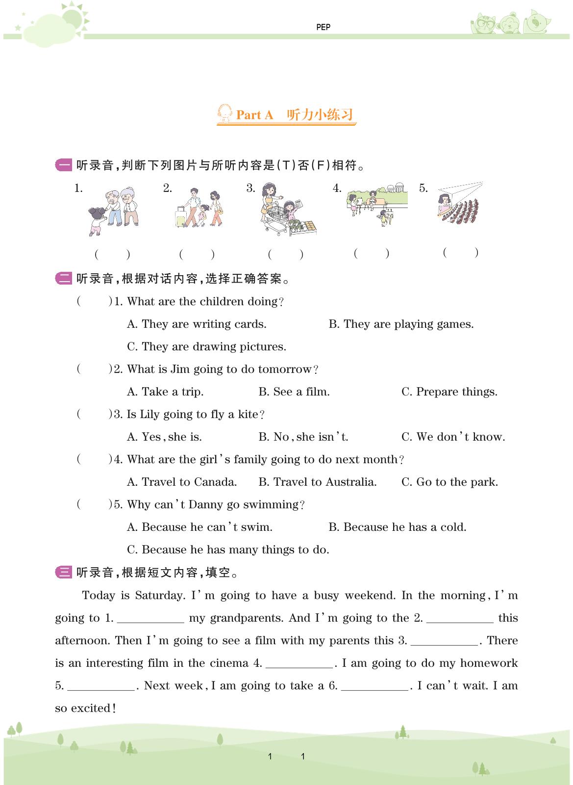 2020上册六年级英语PEP版 Unit 3——Part A 听力小练习