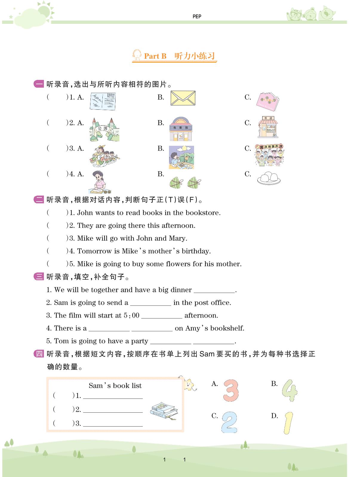2020上册六年级英语PEP版 Unit 3——Part B 听力小练习