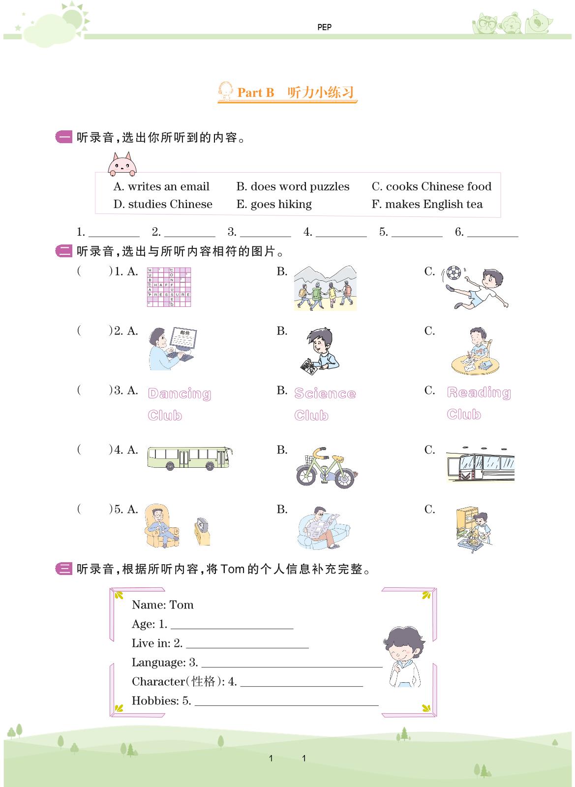 2020上册六年级英语PEP版 Unit 4——Part B 听力小练习