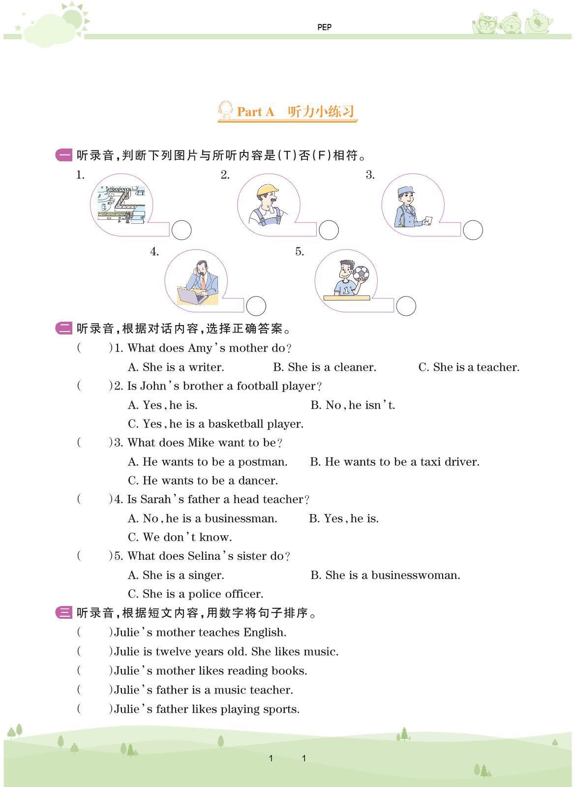 2020上册六年级英语PEP版 Unit 5——Part A 听力小练习