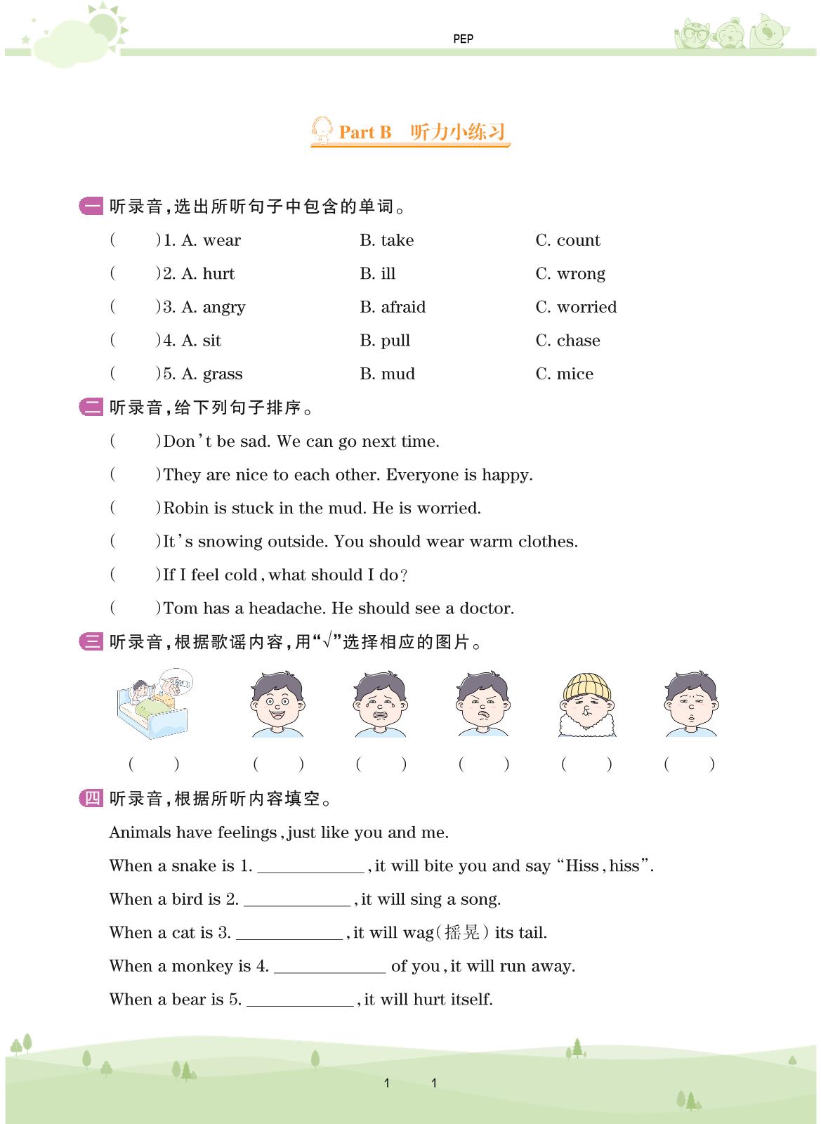 2020上册六年级英语PEP版 Unit 6——Part B 听力小练习