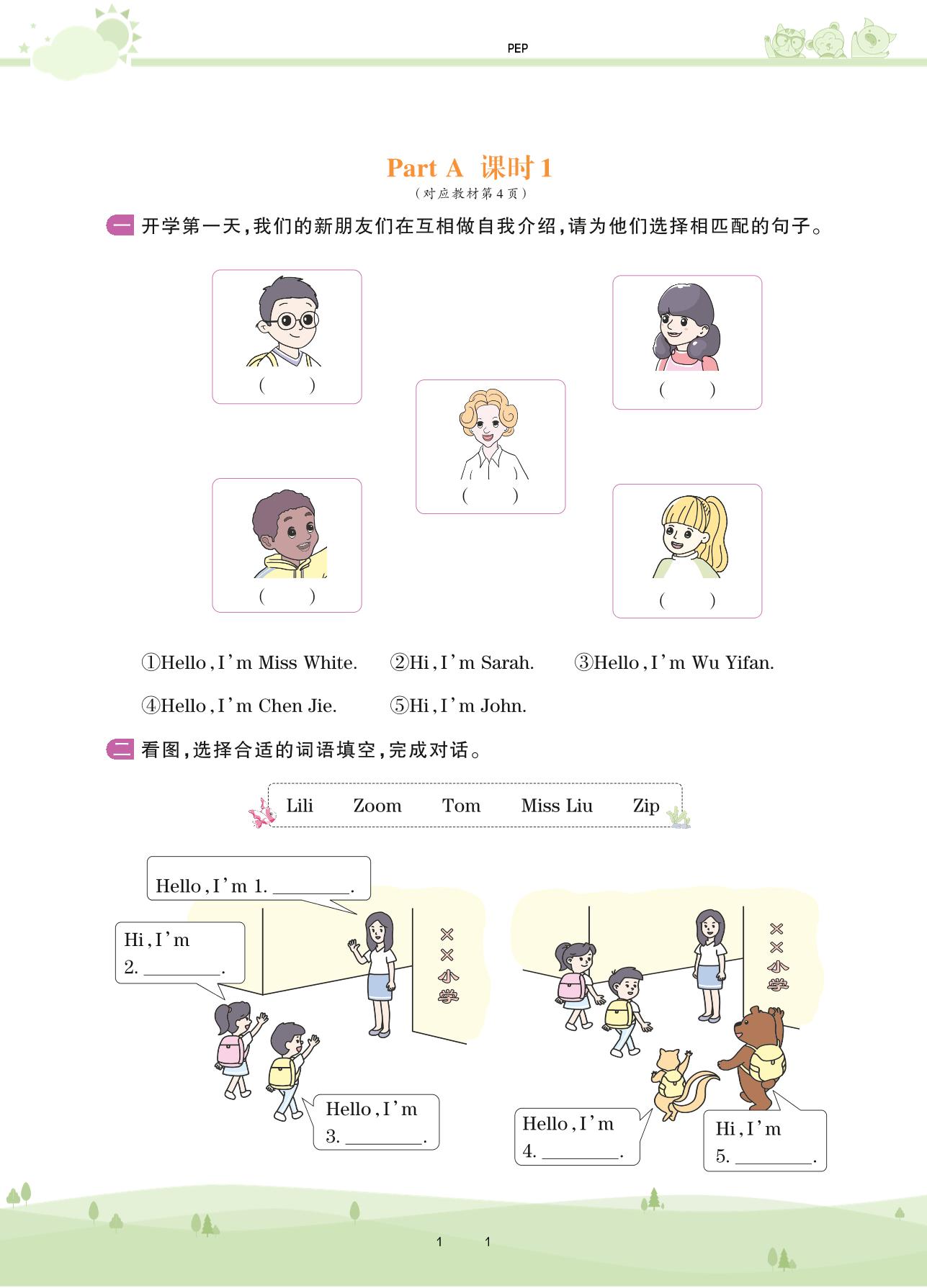 2020上册三年级英语PEP版 Unit 1—Part A 课时1