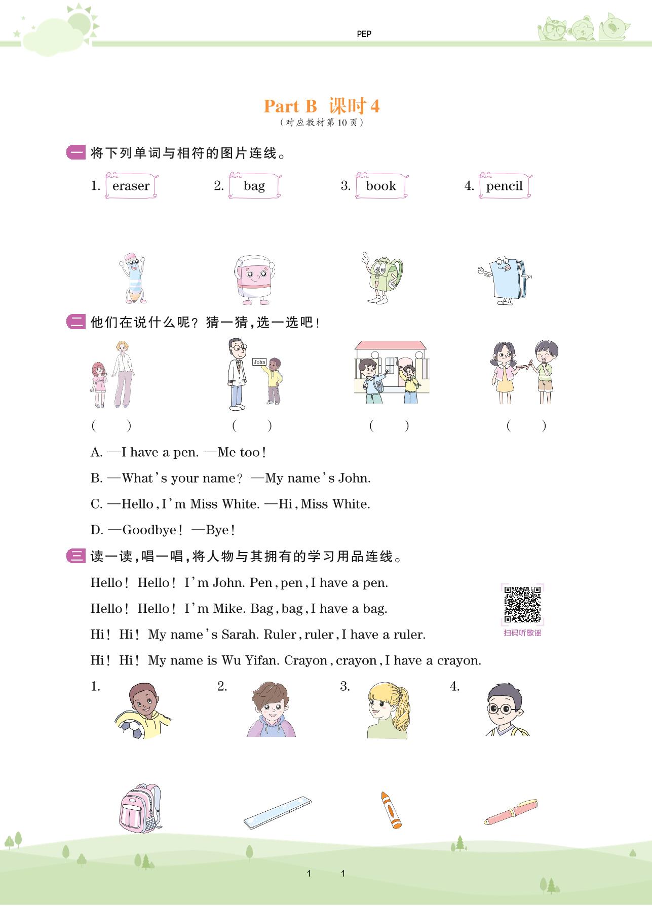 2020上册三年级英语PEP版 Unit 1—Part B 课时4