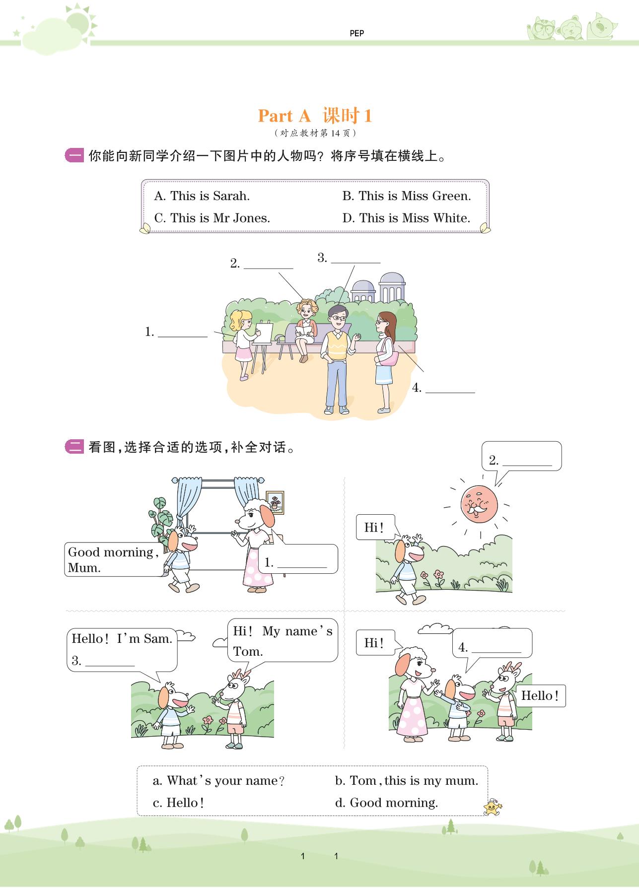 2020上册三年级英语PEP版 Unit 2—Part A 课时1