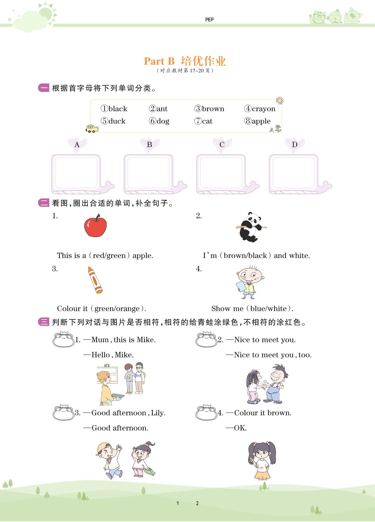 2020上册三年级英语PEP版 Unit 2—Part B 培优作业